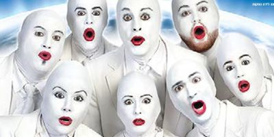 השחקנים כולם לבושים בבגדים לבנים ומאופרים בלבן ומשאירים לנו את העונג