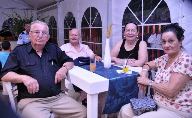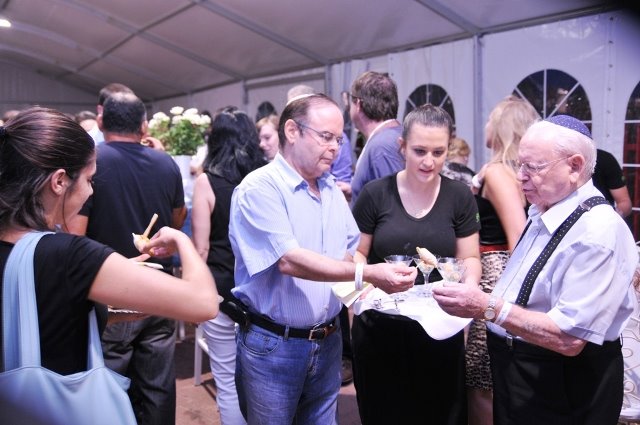 החבורה התאגדה באוהל קבלת הפנים והתכבדה במטעמים ושתייה קלה לפני שפנו למקומותיהם בקדמת הבמה.