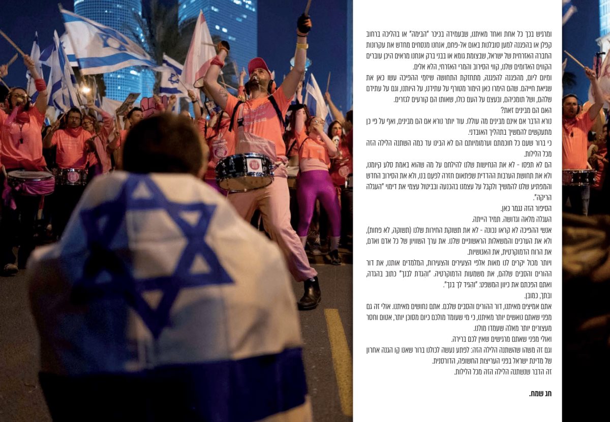 'הגדרת החירות' שהוציאו ארגוני המחאה לכבוד חג הפסח עם כתובים לצד ההגדה המסורתית היוצרים הגדירו אותה כמתנת פסח ללוחמים וללוחמות לחירות ישראל