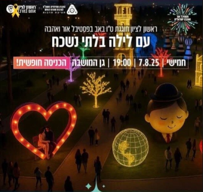 פסטיבל "אור ואהבה ישראלית" יתקיים בראשון לציון ב-7.8.25 עם מופעים, קרקס ומיצגי לייזר, כניסה חופשית