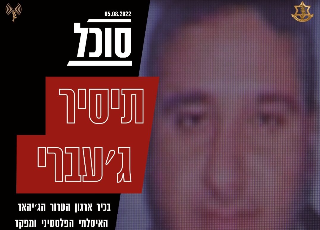 צה"ל תקף לפני זמן קצר יעדי טרור של ארגון הטרור הג'יאהד האיסלאמי הפלסטיני (גא"פ). מטוסי קרב של צה"ל פגעו בבכיר בארגון הג'יאהד האיסלמי הפלסטיני, תיסיר ג'עברי, מפקד מרחב צפון רצועת עזה אשר היה אמון על קידום מתווים לפיגועי נ"ט כנגד אזרחי ישראל וחיילי צה"ל בימים האחרונים