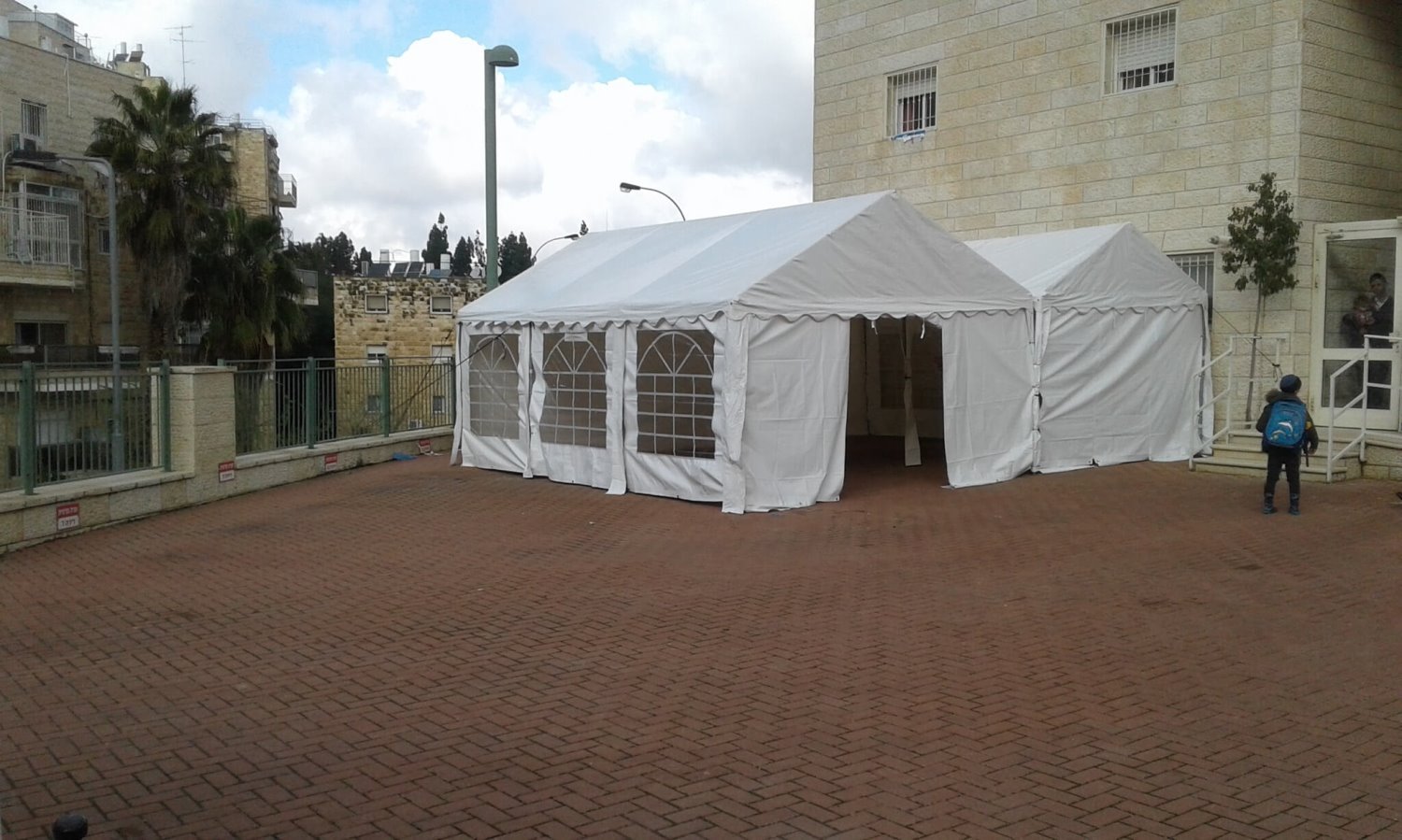 בניית האוהל והתקנת האביזרים לקראת שבוע האבל