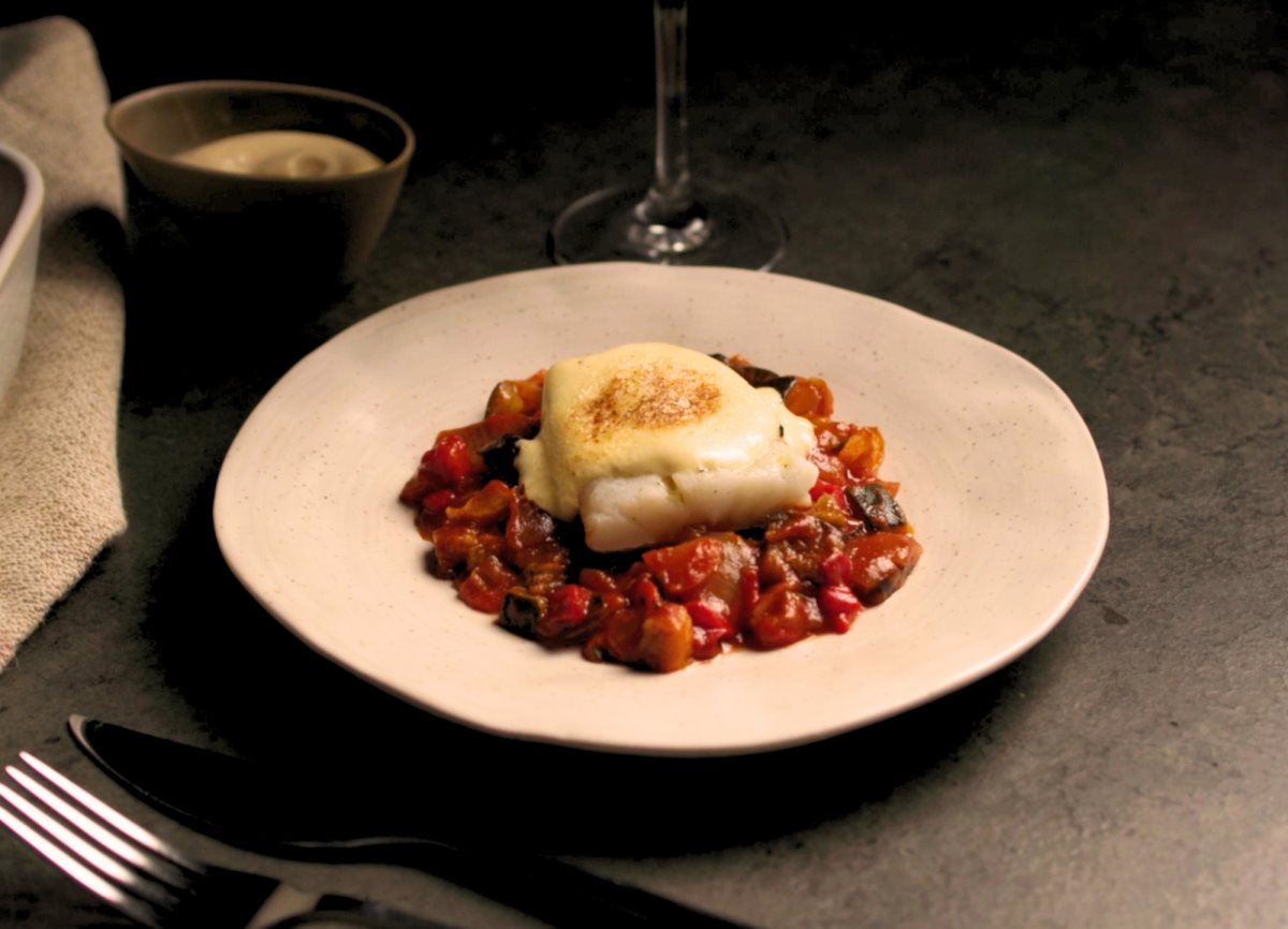 דג בקלה אפוי ברוטב איולי ובליווי יין לבן