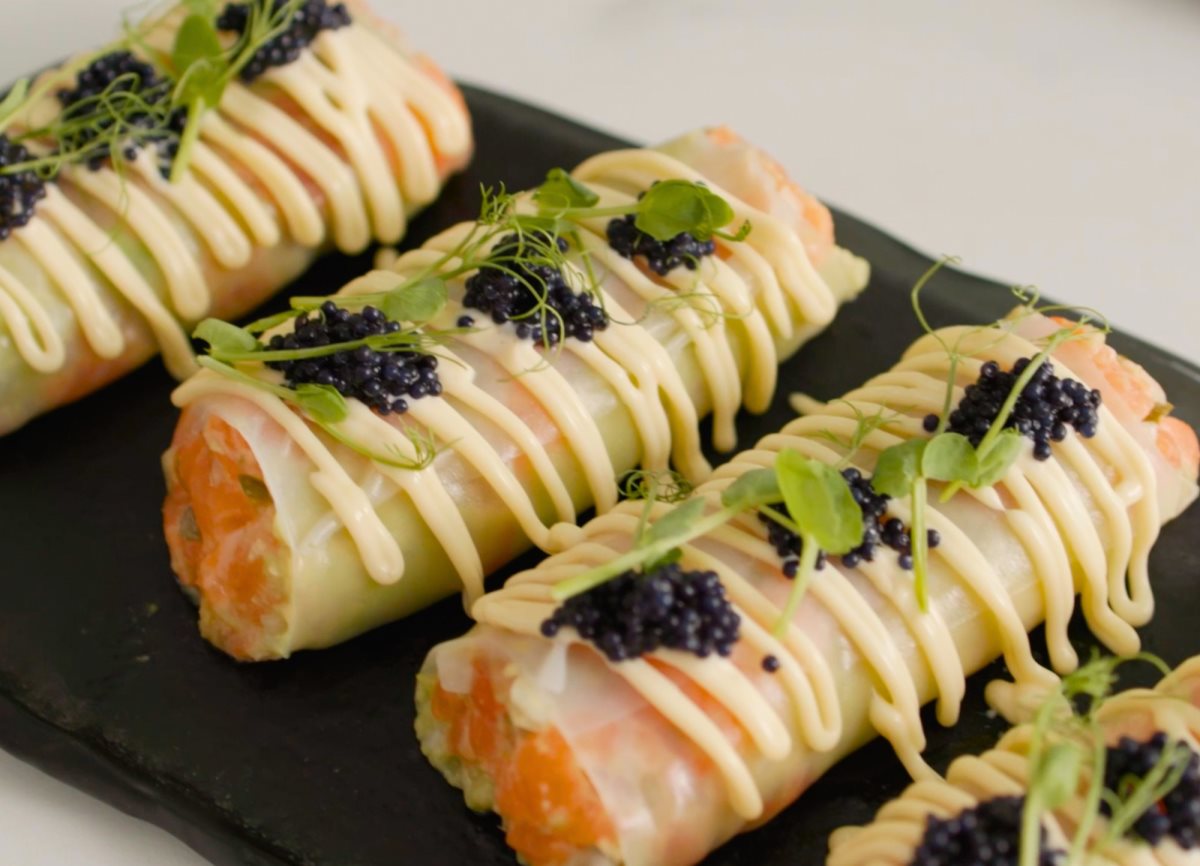 קנלוני אורז עם אבוקדו וסלמון ברוטב צ'ילי