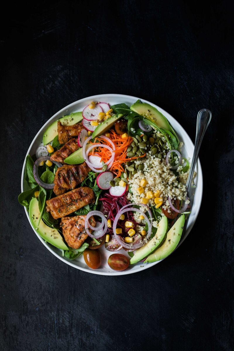 סטייק טופו על סלט קולסלו