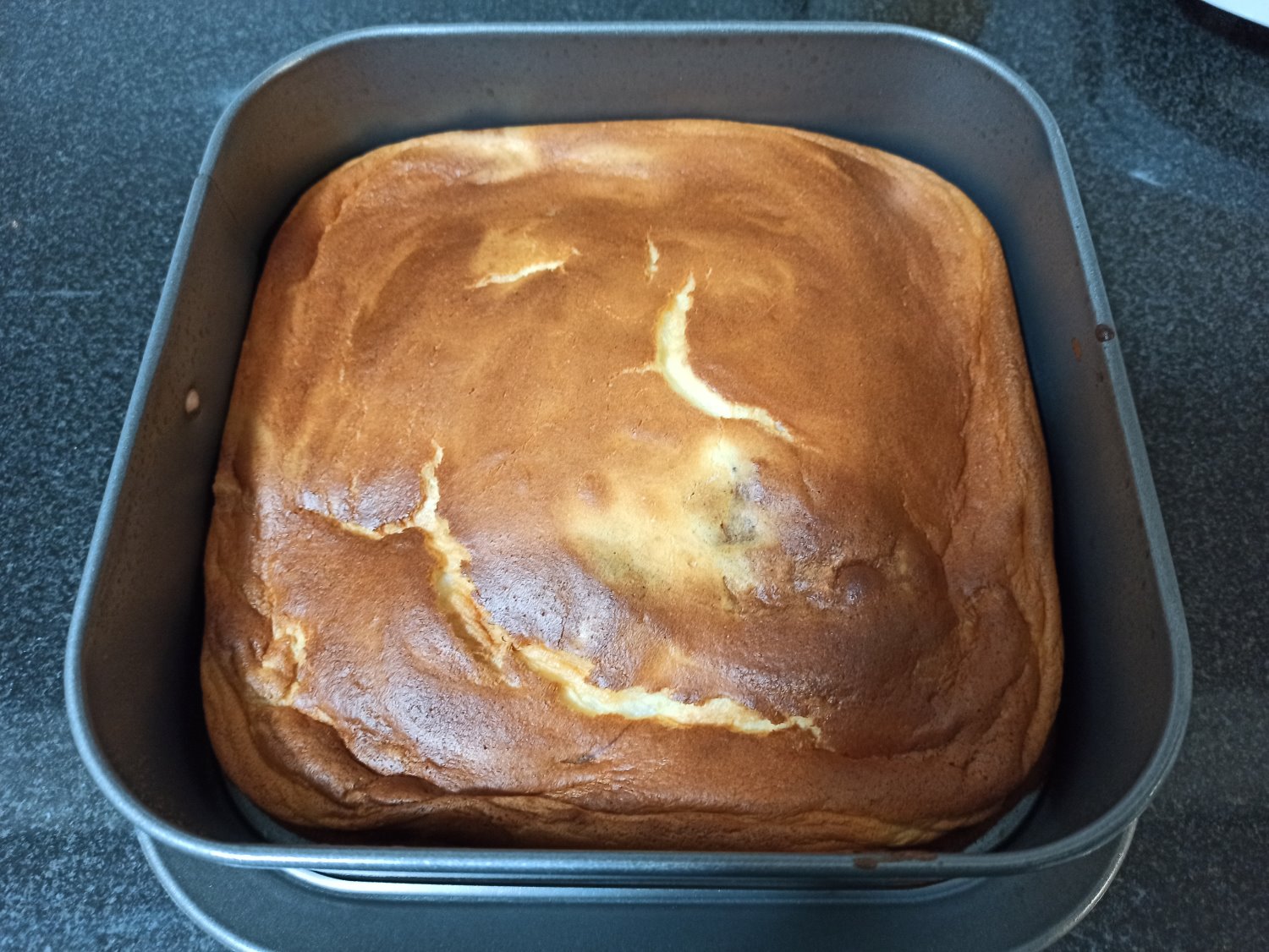 - שמים בתחתית התנור תבנית גדולה עם מים רותחים ואז ממקמים את העוגה על הרשת באמצע התנור, מעל לתבנית עם המים