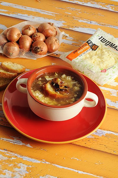 - להגשה: מוזגים בקערה יפה את המרק החם, מפזרים גבינה טבעונית מגורדת של "משומשו" ומניחים מעל בגט קלוי ומעט בצל מטוגן. ניתן להכניס את הקערה להקרמה של כ-5 דקות בתנור.