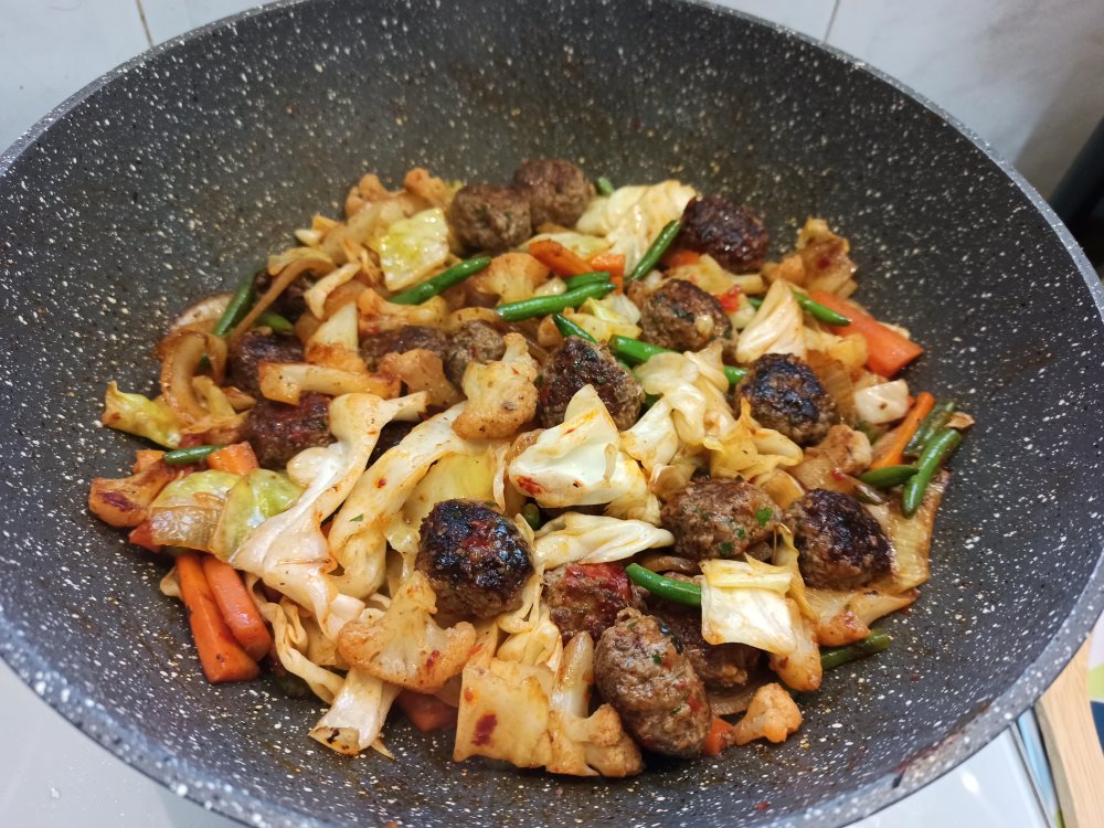 מתכון לכדורי בשר וירקות מוקפצים במחבת