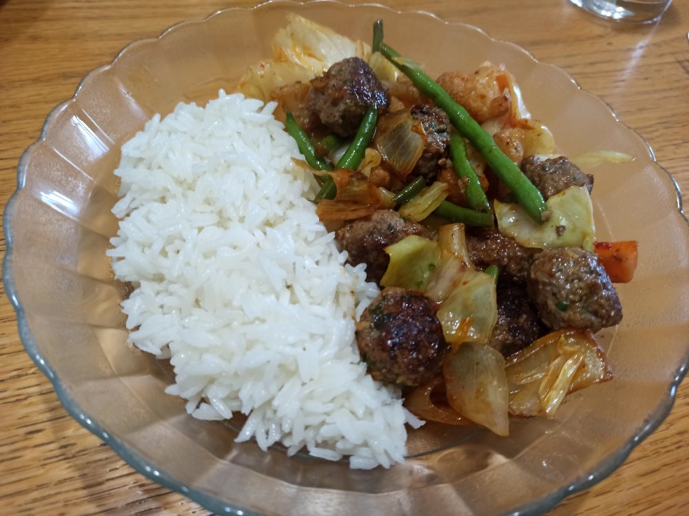 הפעם אנחנו מביאים לכם מתכון לארוחת צהריים בריאה ומזינה- כדורי בשר מוקפצים עם שלל ירקות צבעוניים!