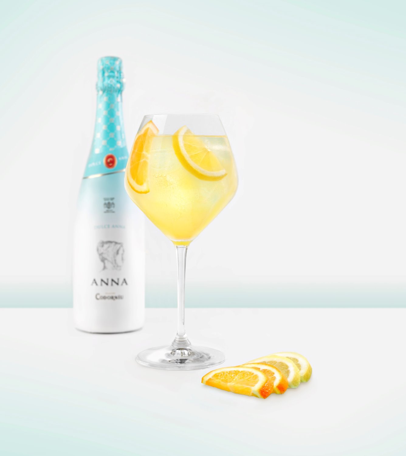 הניחו שניים-שלושה עלי נענע טריים בכוס בלון והוסיפו מיץ מלימון שלם, מיץ מתפוז שלם וכפית סירופ סוכר. הוסיפו משקה קאווה אנה קודורניו בלאן דה בלאן ריזרבה וקשטו בפרוסות דקיקות של לימון ותפוז ונענע.