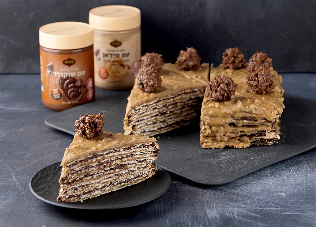 עוגת מצות עם ממרח טחינה שוקולד וסילאן