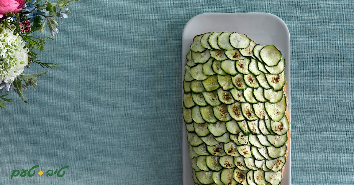 רשת טיב טעם חולקת מתכון חגיגי לשולחן החג - פילה סלמון אפוי עם קשקשי זוקיני ורוטב הדרים. בחירה אידיאלית לארוחת חג: דג עסיסי, דשן ונוח להכנה. שכבת הזוקיני, המסודרת עליו כקשקשי דג, מוסיפה טוויסט יצירתי.