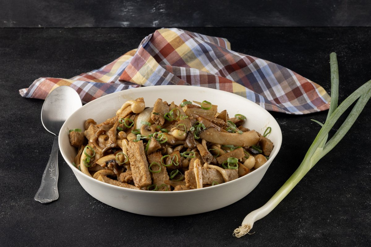 מותג תחליפי הבשר, עוף ודגים INSDEAT, מבית עוף הגליל, מגיש מתכון טעים ומזין של תבשיל עוף מן הצומח בתערובת פטריות. המנה קלה להכנה, עשירה בטעמים, צמחונית ומתאימה גם לטבעונים. מתאימה כארוחת צהריים או ערב מזינה, רק להפשיר, להקפיץ וליהנות. נבחרת המוצרים של INSDEAT כוללת 11 מוצרים טבעוניים, איכותיים וכשרים, מרכיבים טבעיים, ללא רכיבים מהונדסים גנטית, עשירים בחלבון וחלקם ללא גלוטן, המיועדים לבישול והגשה.