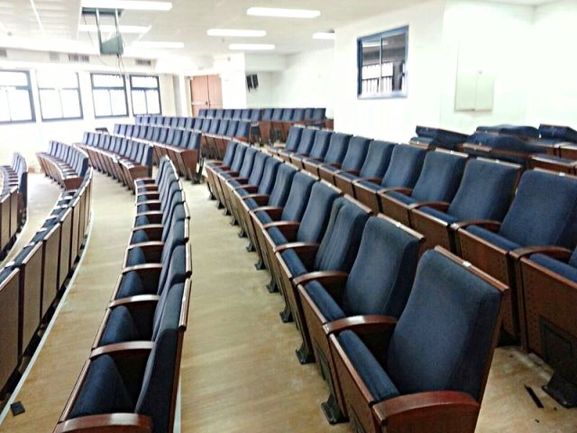 התקנת הפרקט חייבה פירוק כיסאות הפלסטיק המיושנים. בנקודה זו עלתה מחשבה לעשות שימוש בכיסאות היכל התרבות שהוחלפו רק לפני כשנה. בעלות שולית שבעיקרה עבודת התקנת הכיסאות, העבירה החברה העירונית בראשות אלי פולק למעלה מ-200 כסאות אולם נוחים למקיף י'. בשילוב הפרקט החדש, האודיטוריום שינה את פניו לחלוטין.