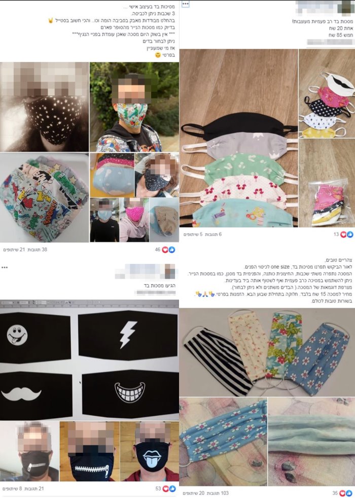 הפרסומות בפוסטים מבטיחות דברים כמו: "מסכות בד בעיצוב אישי, בעלות 3 שכבות שניתנות לכביסה. בהחלט מבודדות מאבק בסביבה הומה וכו'.. והכי חשוב בסטייל - בדיוק כמו מסכות הנייר מהסופר פארם" בפוסט נוסף ציינו: "לאור הביקוש תפרנו מסכות בד, one size לכיסוי הפנים.המסכה נתפרה משתי שכבות, החיצונית כותנה, והפנימית בד מסנן, כמו במסכות הנייר.