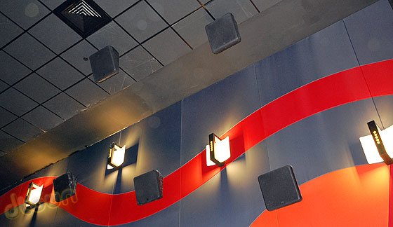 אולמות האודיו הללו, כוללים את שורת הרמקולים המוכרת על הקיר, אולם מעליה יש שורת רמקולים נוספת וגם רמקולים המוצבים על התקרה (נקראת בהומור ע"י מפתח המערכת: "הקול של אלוהים") ושתי שורות רמקולים מאחורי המסך עליו מוקרן הסרט, כך שהצופה מוקף רמקולים בארבעת צידיו. כאמור, באולם הגדול יש 11.1 ערוצים, זאת לעומת 7.1 ערוצים באולמות הרגילים.