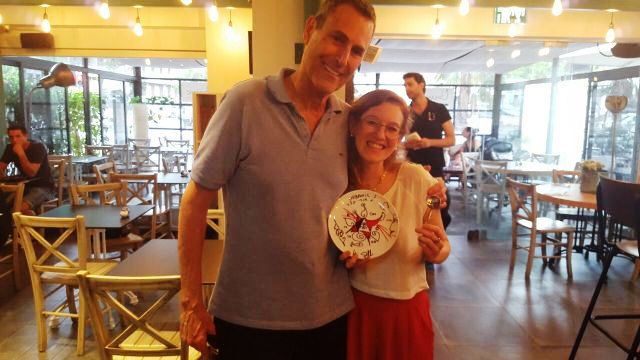 גלר שהתלהב מהאוכל ומהמקום החליט להשאיר פיסת אומנות פרי ידו שאותה שירבט בלייב על אחת מצלחות המסעדה ואף חתם על כפית מבלי לכופף אותה.