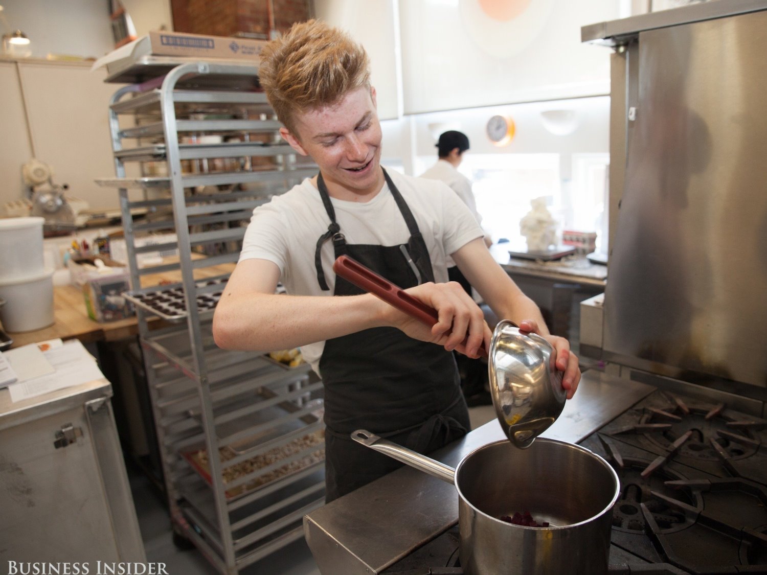 השף הצעיר (17) התחיל מהגשת מנות ממסעדה קטנה שהקים בביתו וכעת, הוא בעל מסעדה במנהטן שמגישה 3 פעמים בשבוע- הוא ממציא את המנות ומבשל הכל בעצמו.