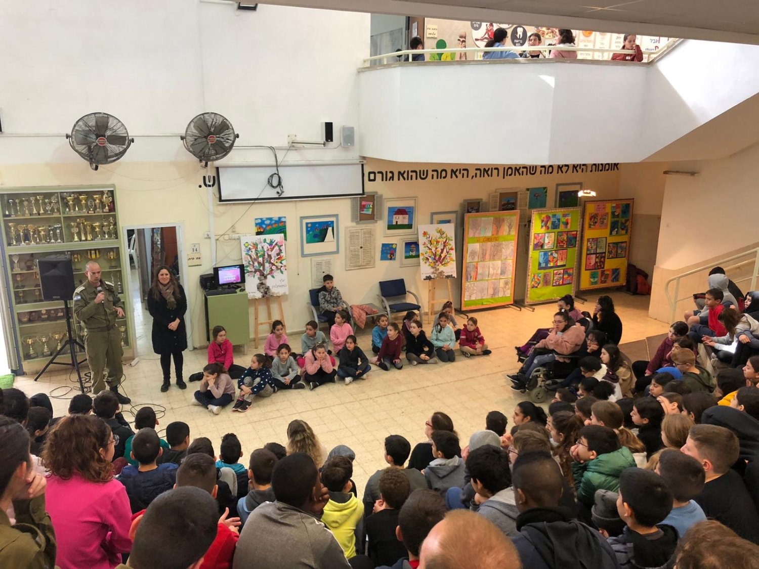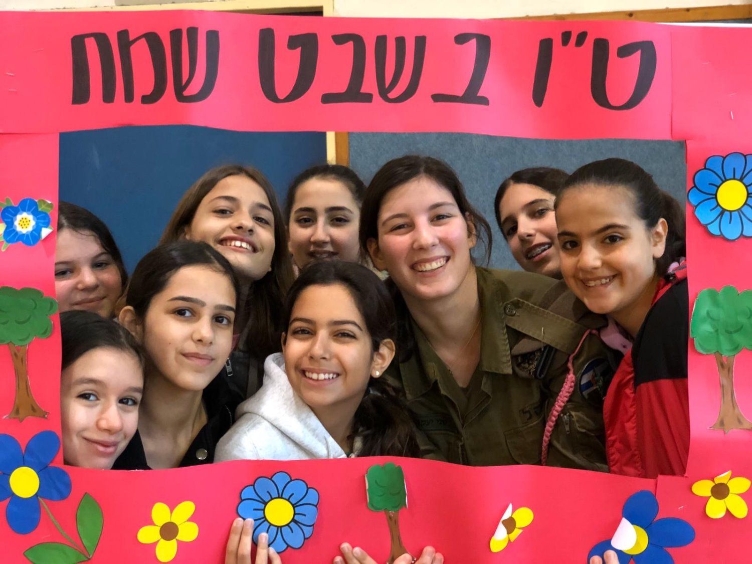 חיילי וקציני ביה״ס לתיאום וקישור יחד עם ביה״ס יסודי ״שקד״ בנס ציונה ועמותת ״ניצני ראשון״ בפעילות משותפת לכבוד חג הט"ו בשבט