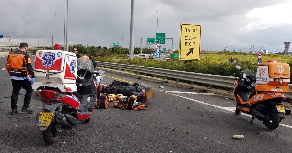 שני פצועים באורח בינוני בתאונה בין קטנוע למכונית פרטית סמוך למחלף ראשונים