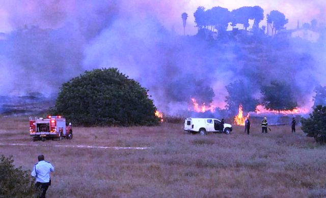 עוד רסיסים נפלו באזור נס ציונה ובאזור פרצה שרפה מרסיס שנפל לקרקע.