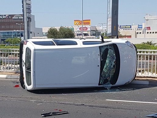 רכב התהפך בקרבת הסינמה סיטי