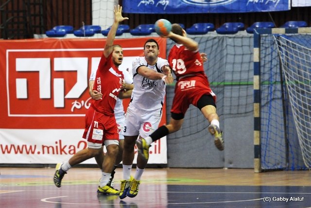 בדקה ה-28 התוצאה עמדה כבר על 10:15 בעקבות שער יפהפה של המרכז, יובל גררה, על אף שהאדומים היו עם ארבעה שחקנים בלבד על הפרקט. האדומים לא הצליחו לשמור על הפער וחוסר ריכוז בשתי הדקות האחרונות עד ההפסקה גרמו ליתרון 13:15 בלבד בהפסקה בעקבות ספיגת שער בזריקה מקו תשעת המטרים.
