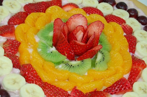 סדרו את הפירות על גבי העוגה בצורה מעגלית.