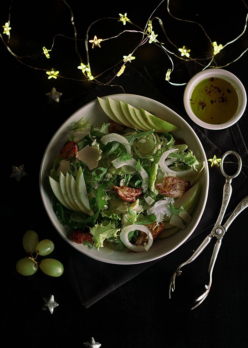 סלט ירוק במיונז ביתי עם נתחי חזה אווז מעושן