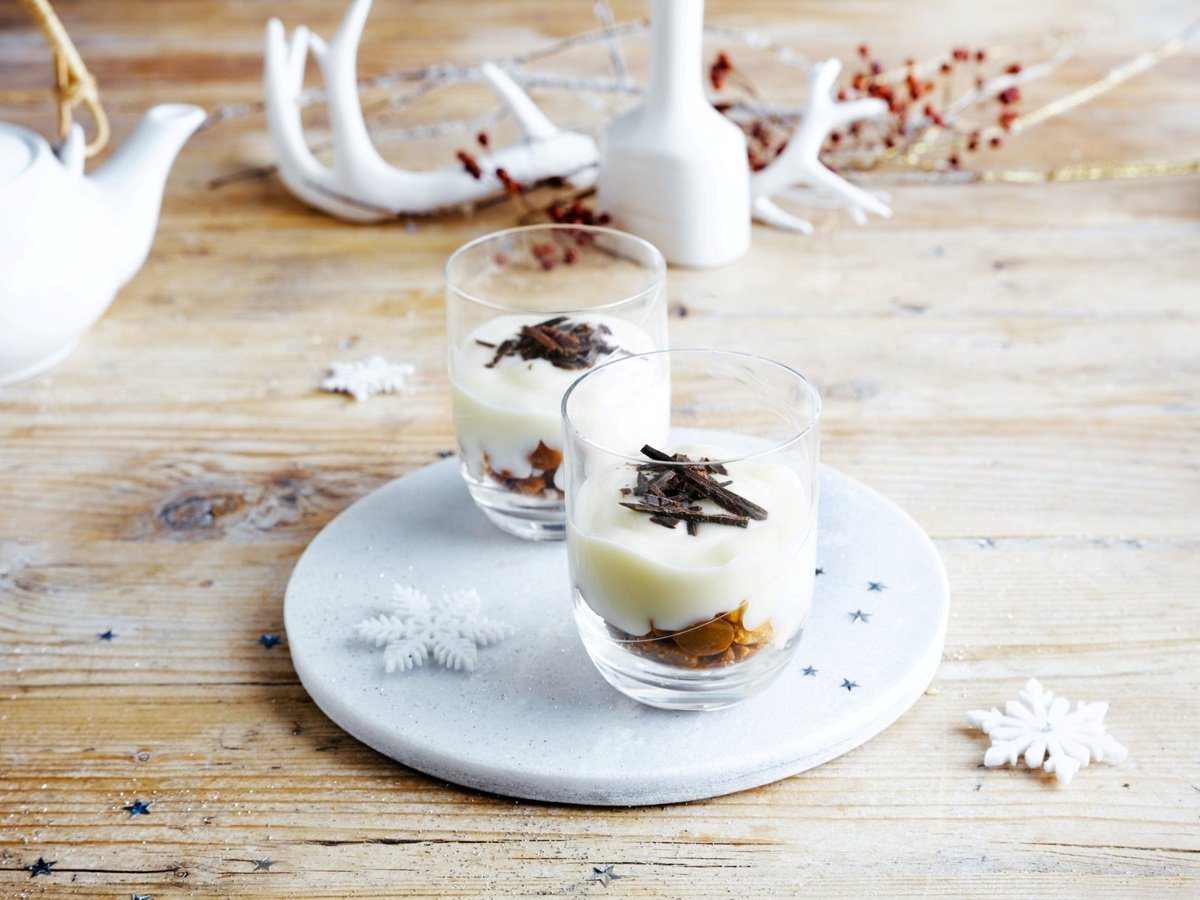 3. מחלקים את שברי האגוזים בין 4 כוסות קינוח. יוצקים מעל האגוזים מעדן Alpro קוקוס לכל כוס. מפזרים שוקולד מגורר. מגישים.