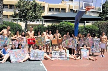 עירומים כביכול, וחלקים מגופם מוסתרים בשלטים. התמונות עלו לאינטרנט ועוררו סערה, שהובילה להחלטת הנהלת בית הספר כי התמונות המדוברות לא יופיעו בספר המחזור.
