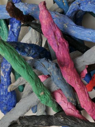 מוטות צבעוניים נכרכו, נמעכו, והודקו לצורתם הכמו-אחידה והם מחוברים ויוצרים מיצב צבעוני, תלת מימדי.