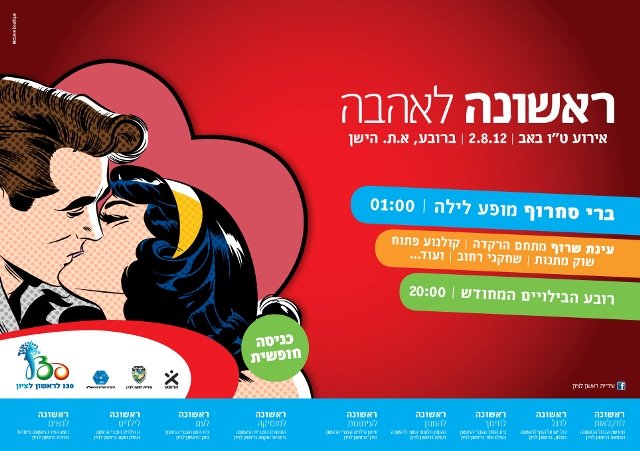 אירועי ט"ו באב שייתקימו ברובע הבילויים המחודש , אזור התעשייה הישן של ראשון לציון במזרח העיר בתאריך ה- 2/8/12 עם ברי סחרוב, עינת שרוף ועוד פעילויות מגוונות....פרטים בכתבה.