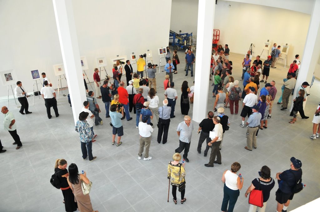 האורחים התרשמו ממספר מצומצם של כ-10 מיצירותיו שהוצבו לצורך הביקור על גבי קני ציור בחלל האולם הרב תכליתי, אולם אשר מיועד , בנוסף להיותו חלל תצוגה לעבודות אמנות, גם למופעים חזותיים , ייחודיים שיופקו במיוחד לצורך כך כשהקהל יוכל לצפות בחזיון שיתרחש סביבו ב 360 מעלות.